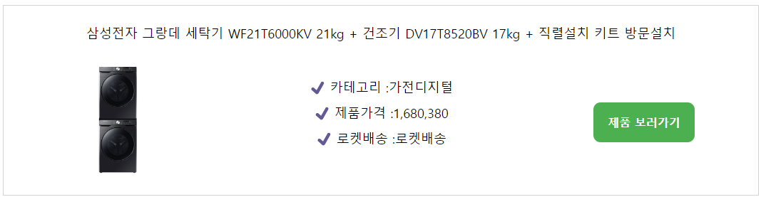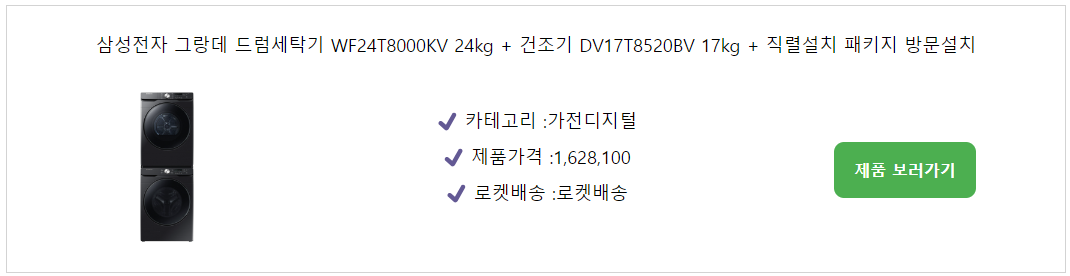 2. 삼성전자 그랑데 드럼세탁기 WF24T8000KV 24kg + 건조기 DV17T8520BV 17kg + 직렬설치 패키지 방문설치