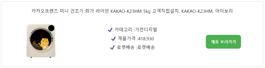 8. 카카오프렌즈 미니 건조기 화가 라이언 KAKAO-K23HM 5kg 고객직접설치, KAKAO-K23HM, 아이보리